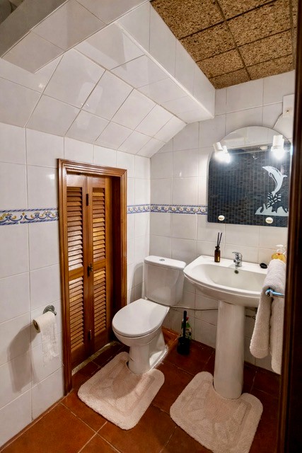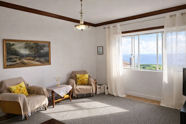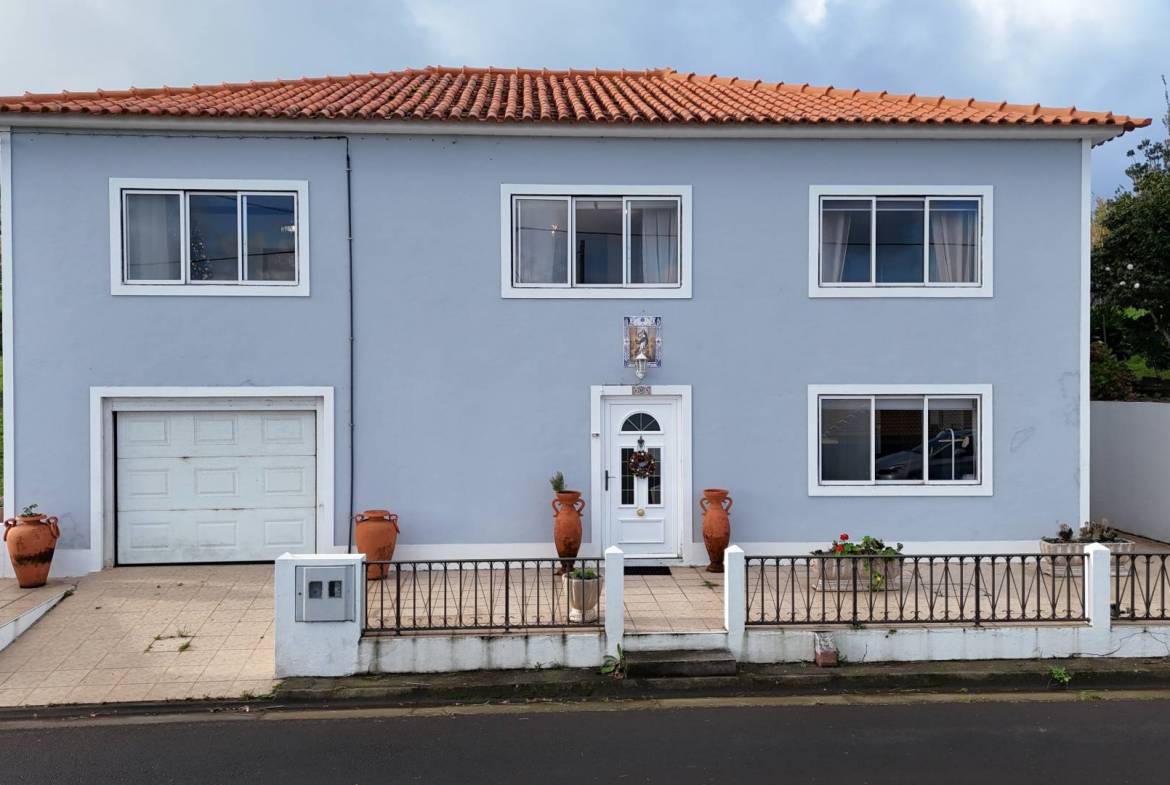 Dit is een huis van 212,90 m² verdeeld over twee verdiepingen. Het interieur is verdeeld in een open woonkamer en keuken, 1 slaapkamer, een badkamer en een garage op de begane grond, met grote ramen die zorgen voor veel natuurlijk licht. Deze indeling kan volledig onafhankelijk zijn van de bovenverdieping, ideaal om te verhuren, waardoor de mogelijkheid ontstaat om extra inkomsten te genereren. De toegang tot de eerste verdieping is via een mooie houten trap waar we een gang vinden die ons naar rechts leidt door de badkamer, de hoofdslaapkamer, de keuken en de tweede slaapkamer met een eenpersoonsbed. Aan de linkerkant hebben we een woonkamer waar u zich zeer comfortabel voelt en kunt genieten van het uitzicht op de zee en het eiland São Jorge door verschillende zeer grote ramen.