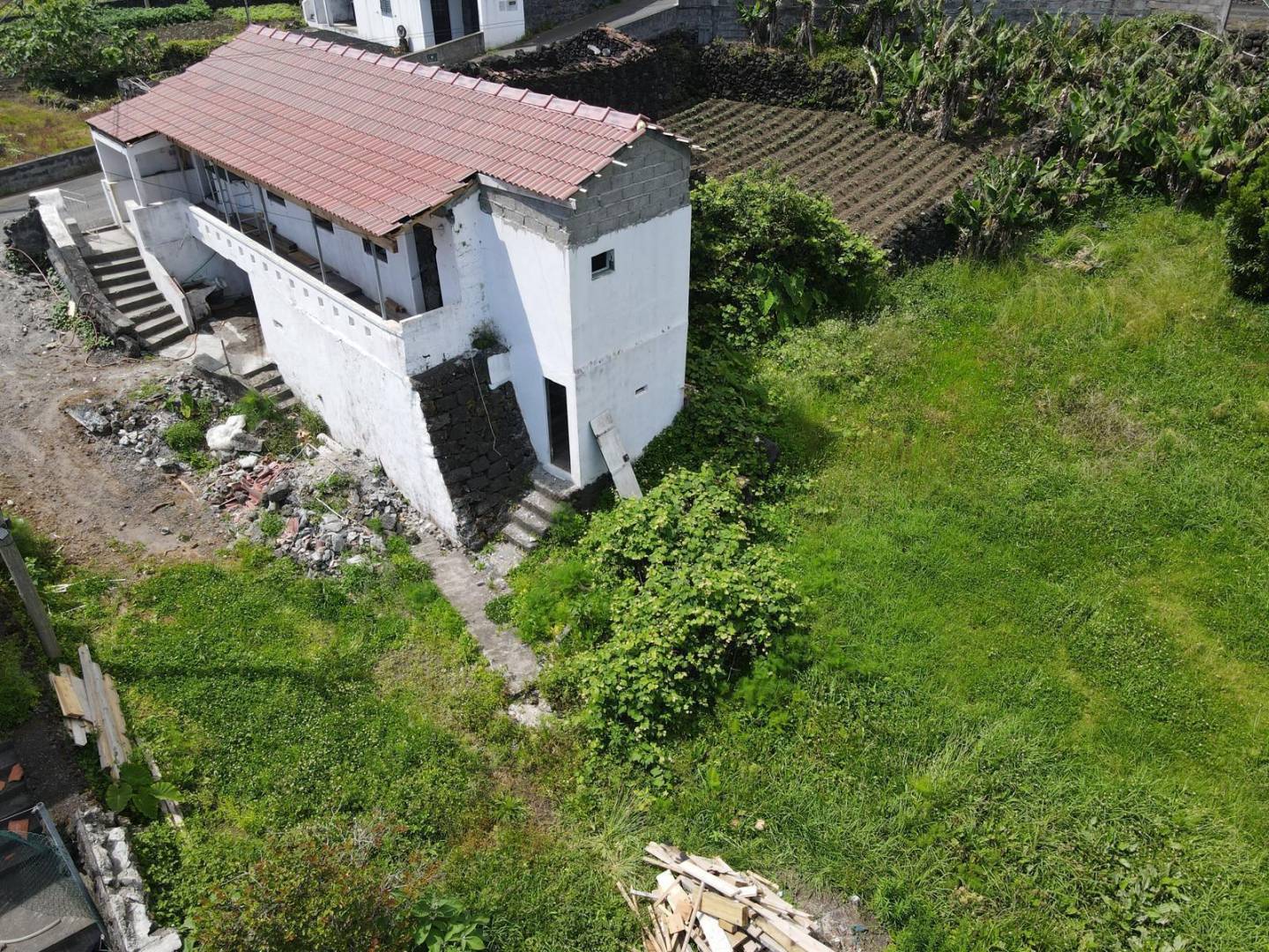 In het gewilde dorp Terra do Pão (São Caetano) is deze traditionele stenen structuur meer dan een ruïne – het is een canvas voor een visionair. Gelegen op een bevoorrechte helling waar het weelderige groen van de berg en het diepe blauw van de Atlantische Oceaan elkaar ontmoeten, biedt dit pand een zeldzame kans om een stukje erfgoed van Pico te bezitten.