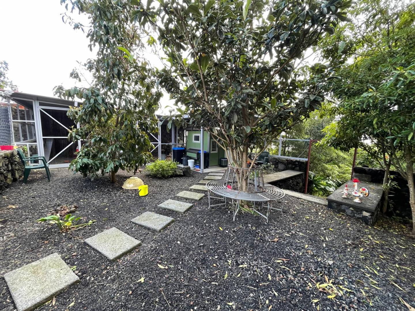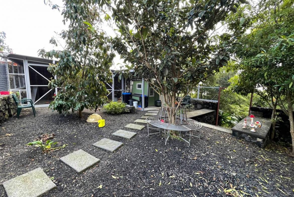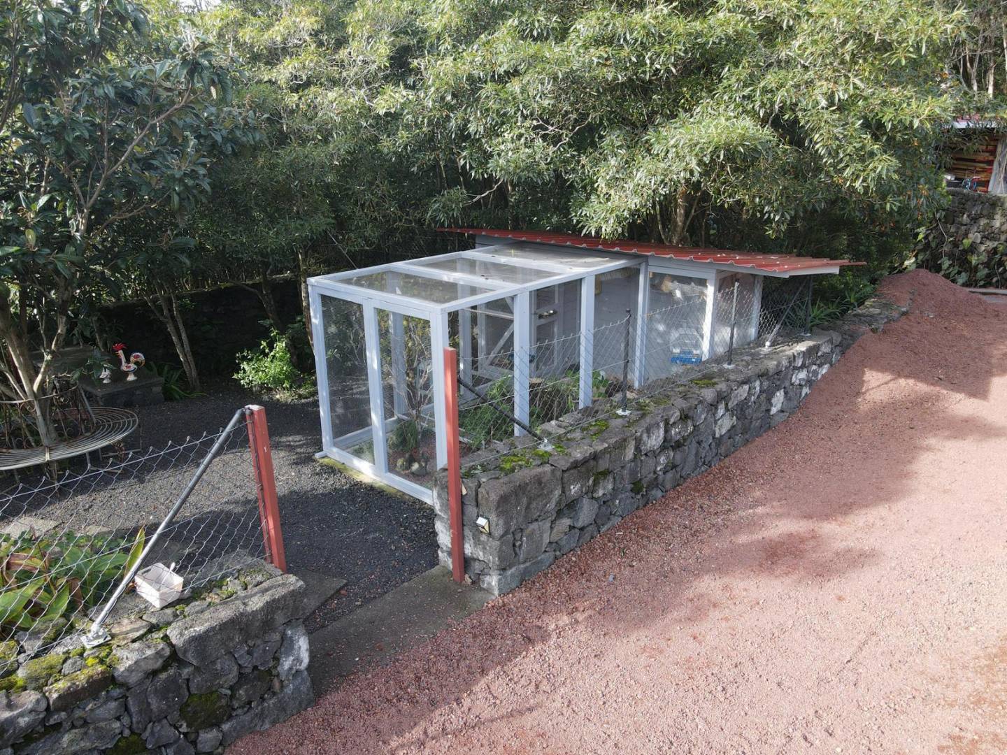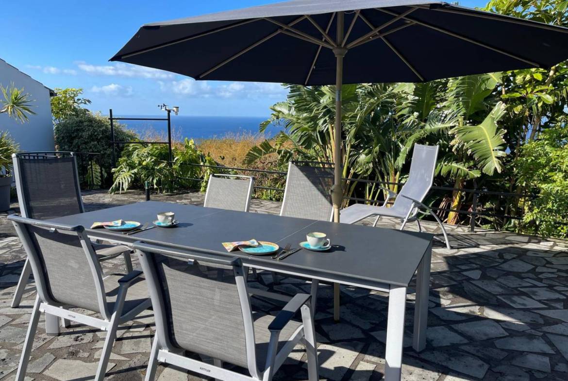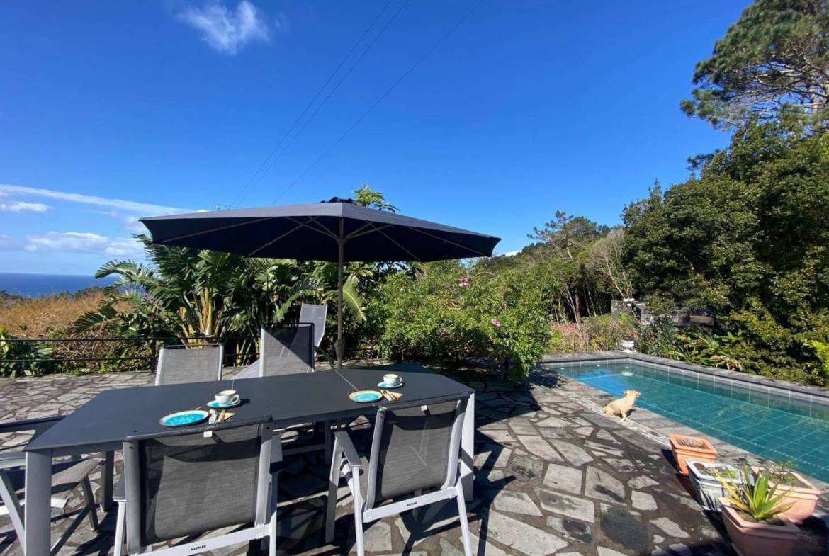 De buitenkant van het pand is een masterclass in landschapsarchitectuur, waarbij gebruik wordt gemaakt van het plaatselijke vulkanische ’terra rossa’ om een opvallend contrast te creëren met het levendige groen.